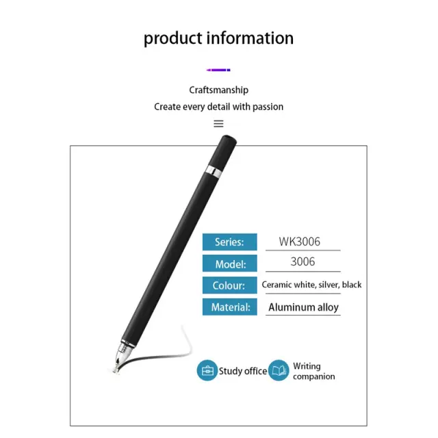 Pisalo za gladko in neprekinjeno pisanje brez poškodb zaslona. Je lahek in udoben za držanje s priseskom. Lahko se nanese tudi na uporovne zaslone.