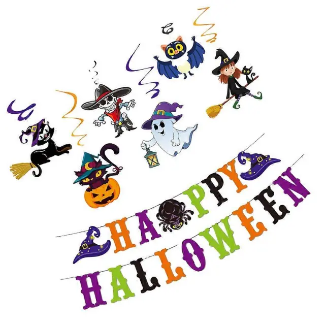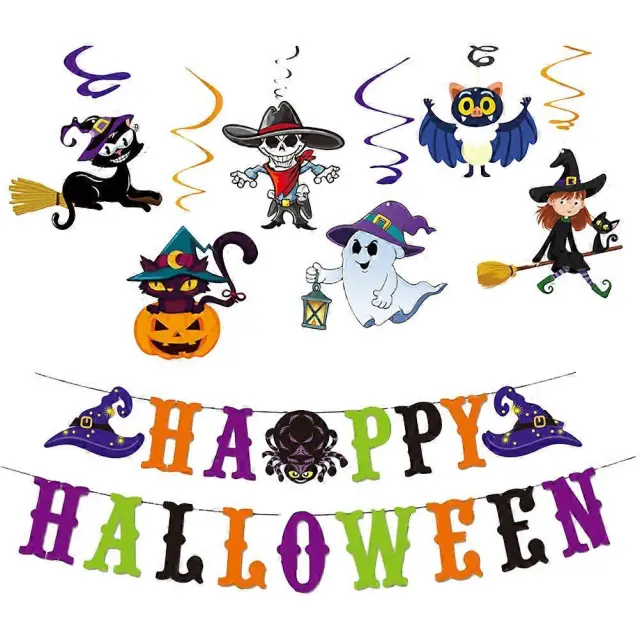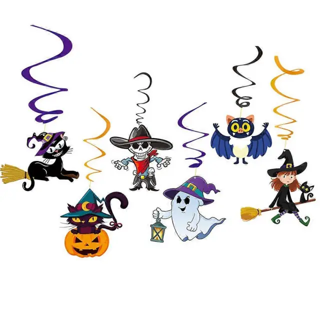 Pisani viseči okraski za zabavo za noč čarovnic s spiralno zasnovo zastave in primerni tako za notranjo kot zunanjo uporabo