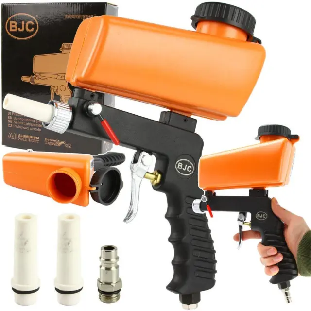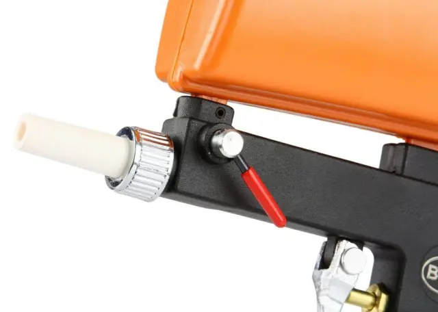 ZAHVALJA UPORABI REZERVOARJA NA VRHU PIŠTOLE, SE PESEK SAM ZDRSI NAV PIŠTOLO, KAR POLEG ZAGOTAVLJA MANJŠO POTREBO PO ZRAKU.