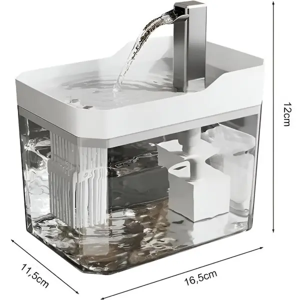 Oblikovana z izjemno tihim črpalko, ki zagotavlja, da vaš ljubljenček ostane sproščen med pitjem brez glasnih zvokov.
