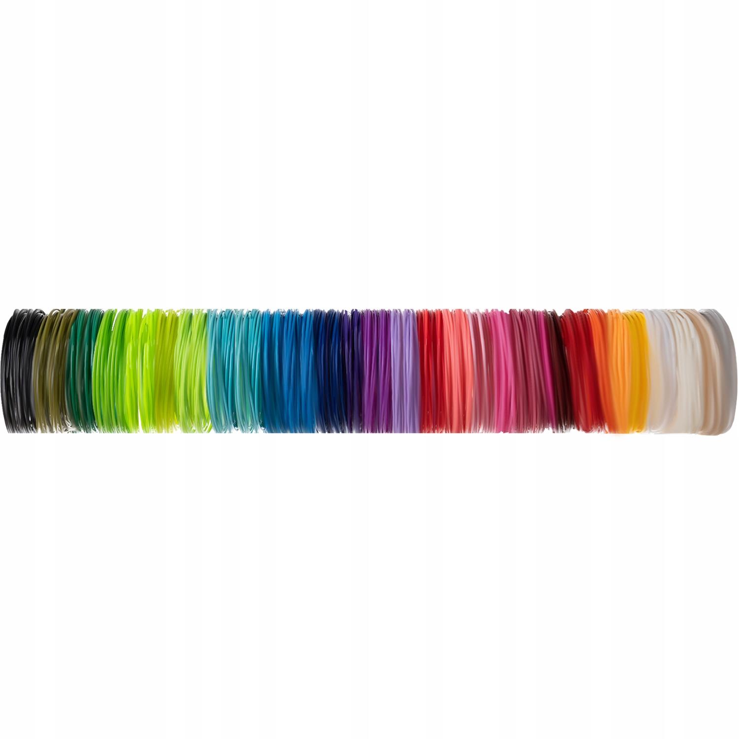 Filamenti so narejeni iz PLA (poliaktida), ki ga odlikuje visoka vzdržljivost, kar zagotavlja trajnost pripravljenih projektov . V kompletu je kar 30 barv, tako da lahko z uporabo ustrezne opreme in lastne domišljije ustvarite prave umetnine.