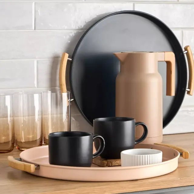 Zeller pladenj Pantone združuje prefinjen dizajn z vrhunsko uporabnostjo. Izdelan je iz trpežne kovine in ročajem iz naravnega lesa, kar mu daje sodoben, a hkrati topel videz, ki se popolnoma zlije z vsako kuhinjo. Idealen je za serviranje pijače, poleg funkcionalnosti pa navdušuje tudi z barvo, ki doda kuhinji pridih elegance in skandinavskega stila. Očistite ga s krpo.