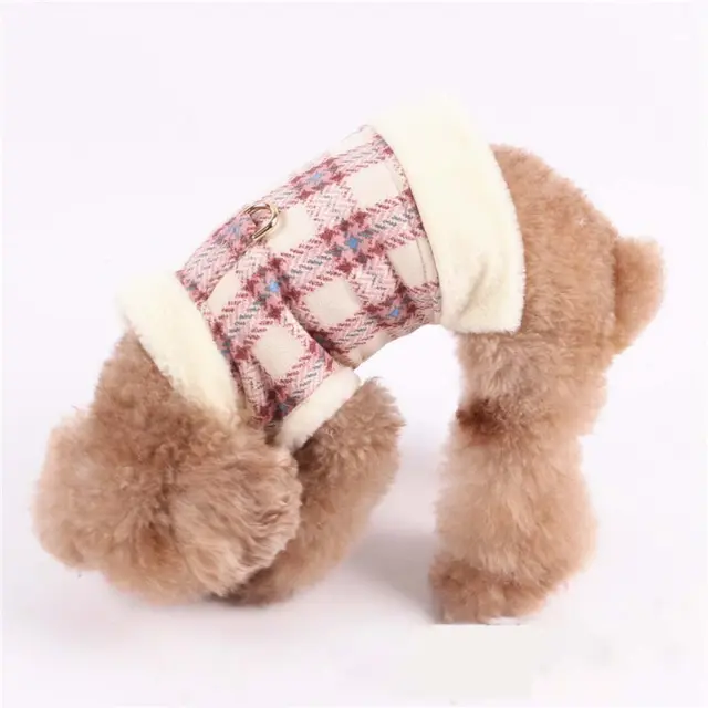 Plaid Plush Pet Vest Topla Jakna - Udobna Zimska Obleka za Majhne Pse M