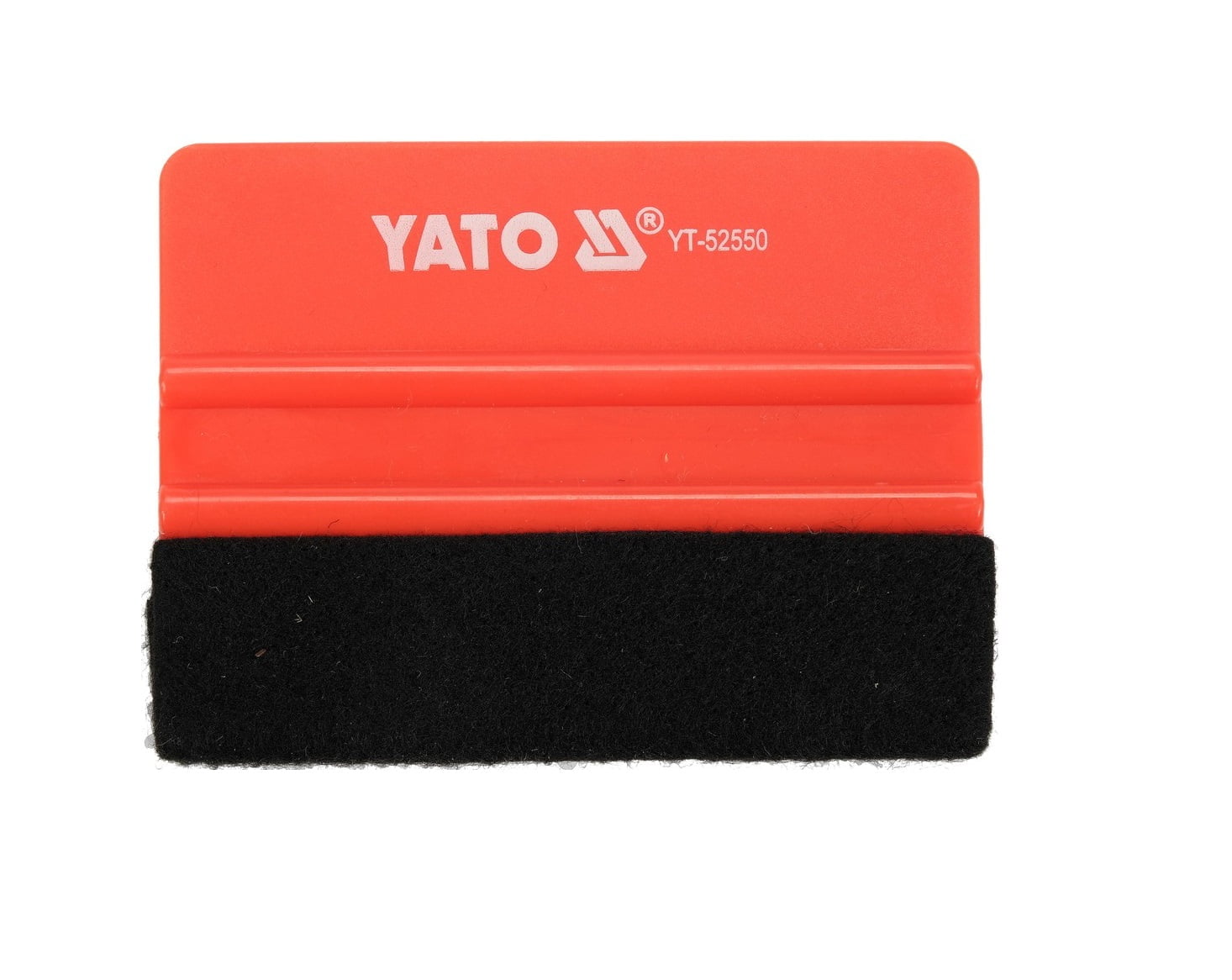 Plastični strgalnik za stiskanje folije, dimenzije 100 x 73 mm. V spodnjem delu za stiskanje, obojestransko podložen z mehkim flisom/filc do višine cca 30 mm.