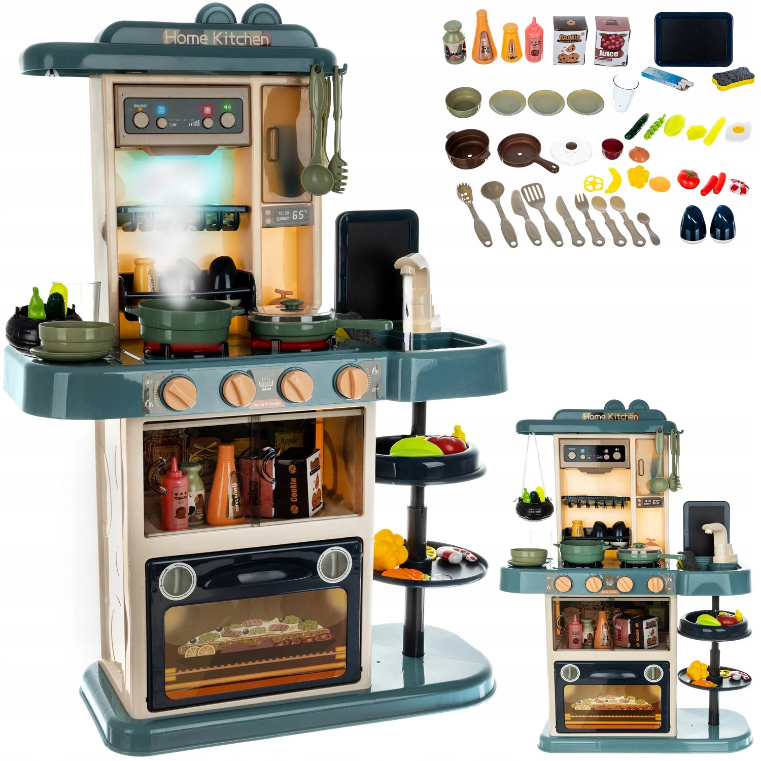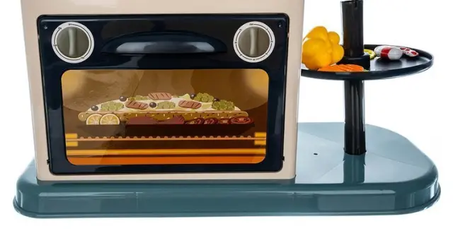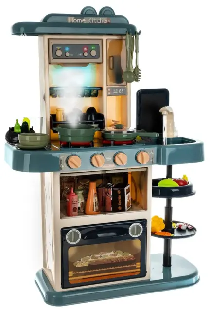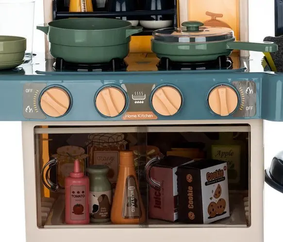 HLADNA PARA IN ZVOKI MED KUHANJEM – kuhinja oddaja realistične zvoke in zvoke kuhanja, kot sta cvrtje in brbotanje . Levi gorilnik ima vgrajen uparjalnik, ki vam omogoča, da dobite učinek “hladne pare” . Za učinek pare vlijemo približno 50 ml vode v luknjo na gorilniku. Lonec odstavimo in čez nekaj časa (ko “voda zavre”) bo iz lonca pritekla hladna para (otroka ne bo opekla).