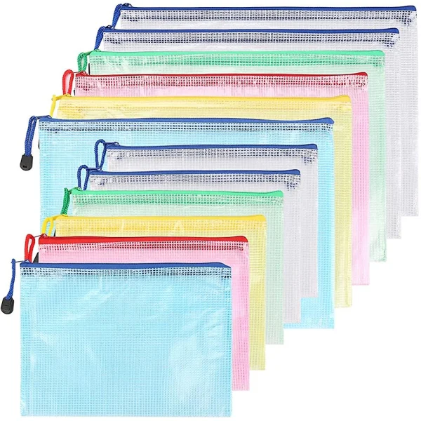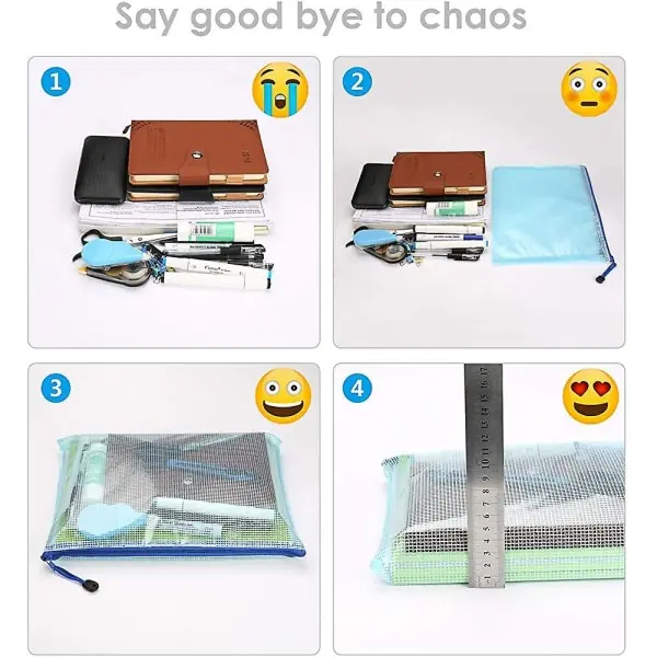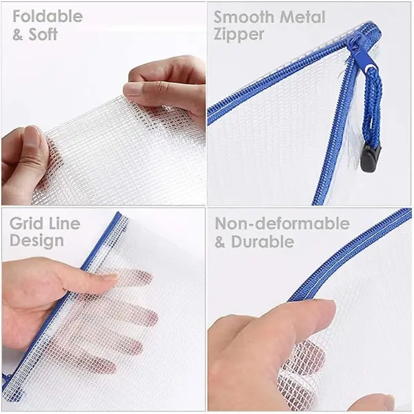 Enostavna uporaba: Vrečke za dokumente v velikostih A5 in A4 so prozorne, tako da zlahka vidite vsebino plastičnih žepov. Vrečke z zadrgo so izdelane iz trpežnega PVC-ja in ščitijo pred obrabo in umazanijo.