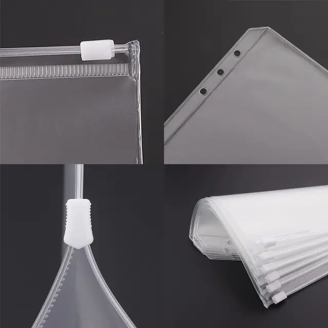 Plastični žepi, primerni za A6 registratorje z do 6 obroči. Izdelane so iz kakovostnega in robustnega PVC-ja z zadrgo na dolgi strani, kar olajša shranjevanje.
