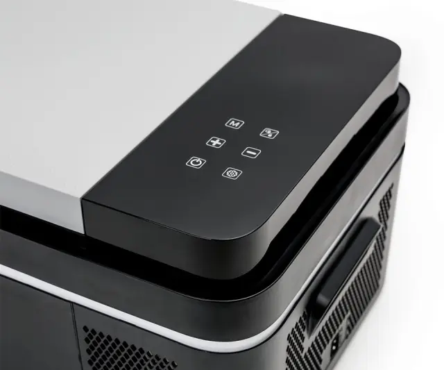 Digitalni zaslon omogoča natančno nastavitev temperature, izbiro načinov delovanja (ECO/MAX) ter enostaven nadzor. Eleganten, sodoben dizajn se lepo poda tako notranjosti vozila kot kamp opremi.