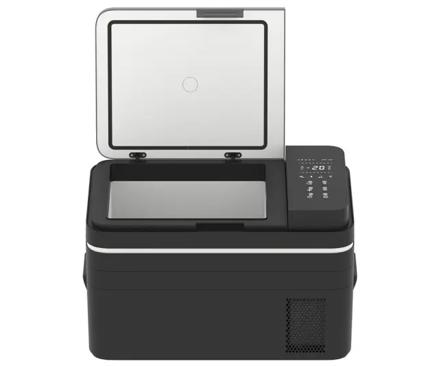 Digitalni zaslon omogoča natančno nastavitev temperature, izbiro načinov delovanja (ECO/MAX) ter enostaven nadzor. Eleganten, sodoben dizajn se lepo poda tako notranjosti vozila kot kamp opremi.