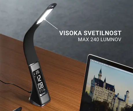PLATINET PDLU2 usnjena namizna LED svetilka, ura, datum, temperatura, rjava