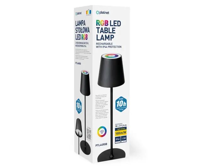 PLATINET PTL44RGB brezžična namizna LED svetilka, do 400 lumnov, 4000mAh polnilna baterija, IP44 odpornost, USB Type-C