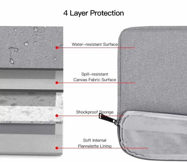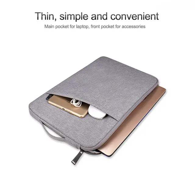 Vodoodporen, lahek in prilagodljiv: torba za prenosni računalnik je izdelana iz visokokakovostnega nepremočljivega platna, tako da je vaš računalnik varno shranjen, tudi če ste na primer zunaj v dežju. Tanka lahka torbica se zlahka prilega drugi torbi, nahrbtniku ali aktovki.