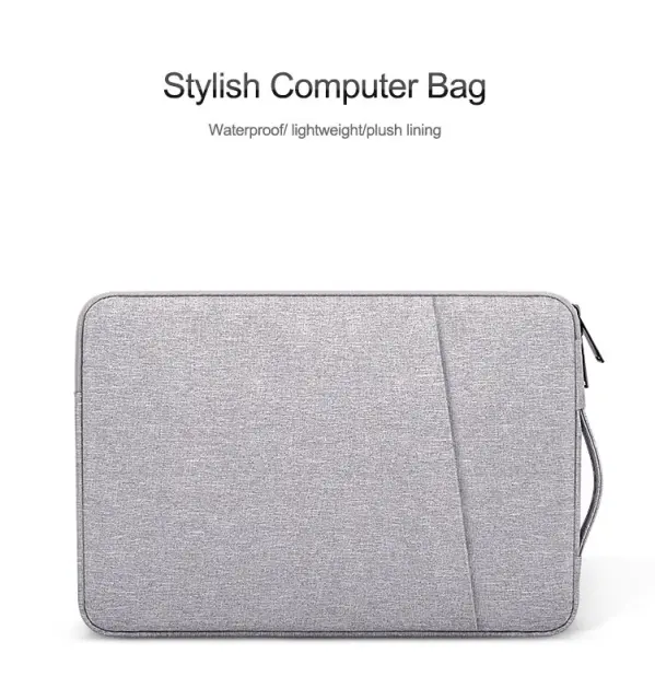 Vodoodporen, lahek in prilagodljiv: torba za prenosni računalnik je izdelana iz visokokakovostnega nepremočljivega platna, tako da je vaš računalnik varno shranjen, tudi če ste na primer zunaj na dežju. Tanka lahka torbica se zlahka prilega drugi torbi, nahrbtniku ali aktovki.
