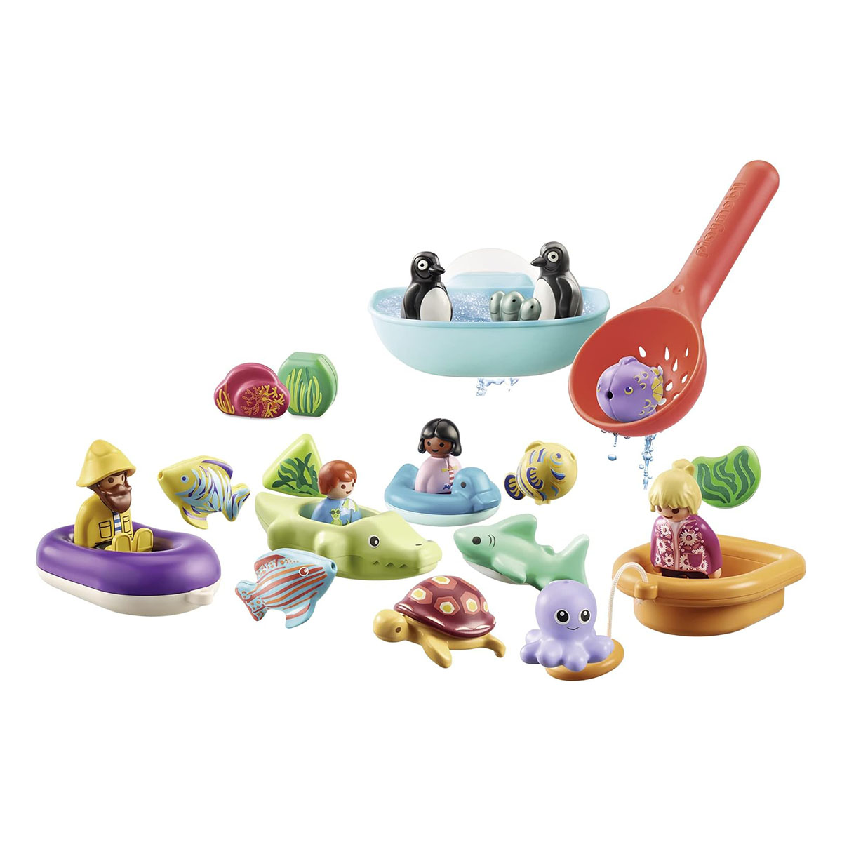 Z vodno tematiko, ki je zelo priljubljena pri otrocih.. Vključno s figuricami, dodatki in kopalniškimi okraski. Otroke spodbuja k razvoju finih motoričnih spretnosti, koordinacije rok in oči ter domišljije.. Izdelano iz visokokakovostnih materialov za maksimalno vzdržljivost.