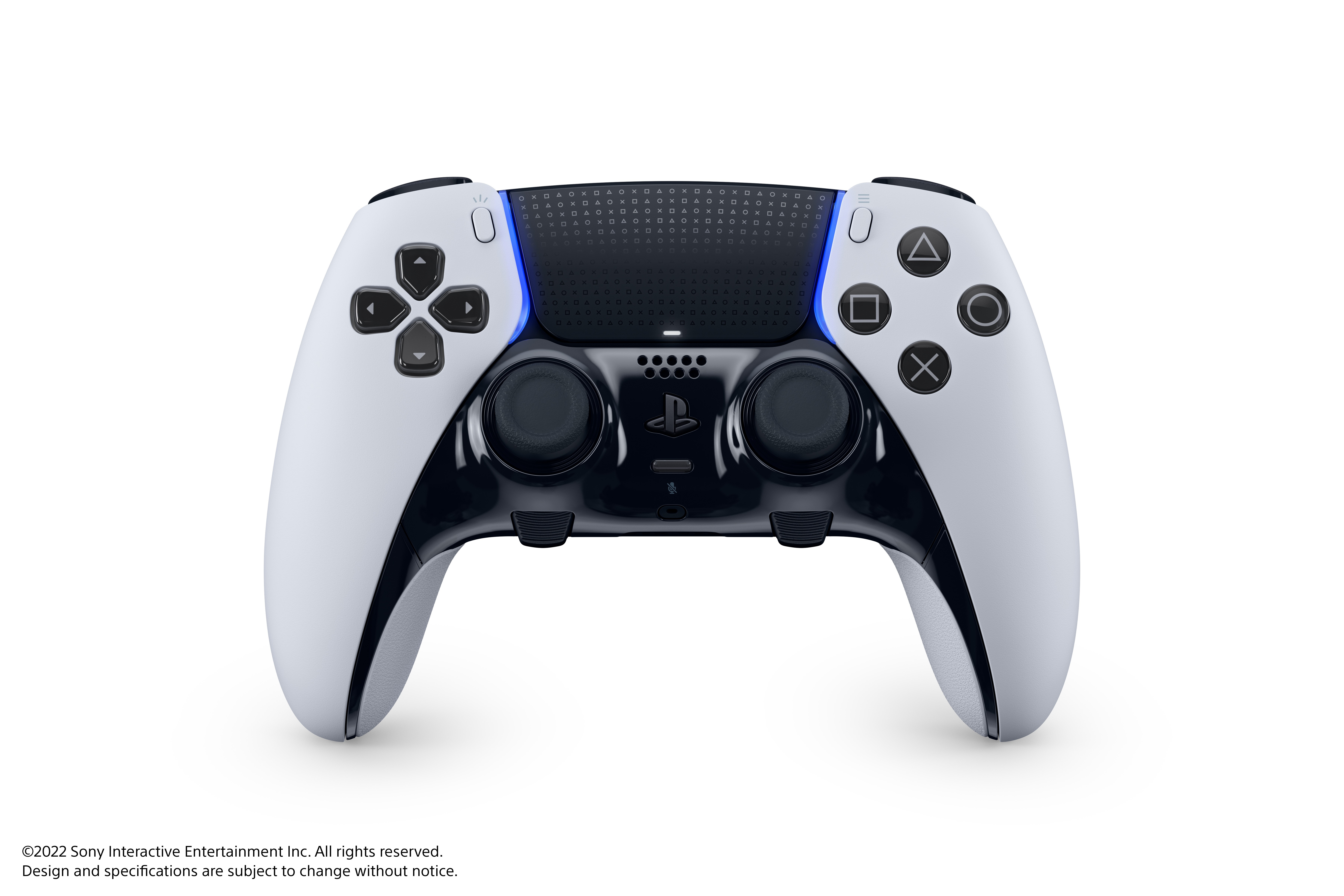 DualSense Edge – pogled od spredaj in zadaj na belem ozadju