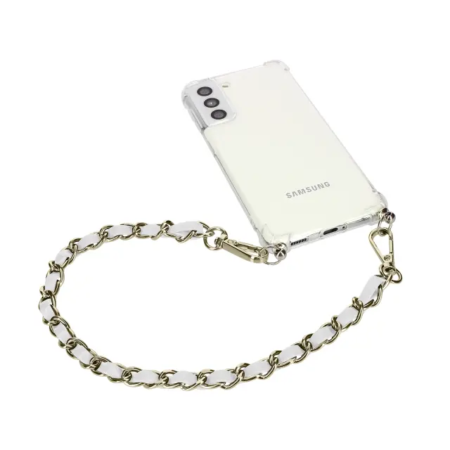 Bela in srebrna telefonska verižica. Ta dragulj je idealen zaveznik za razredno nošenje vašega pametnega telefona. Lahko se ga pritrdi tudi na USB kljuce, obeske za kljuce, fotoaparate itd. Dolžina 40 cm za boljšo ergonomijo.