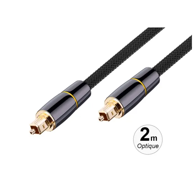 Pleteni najlonski optični zvočni kabel s pozlačenimi konektorji 2 m, Črna