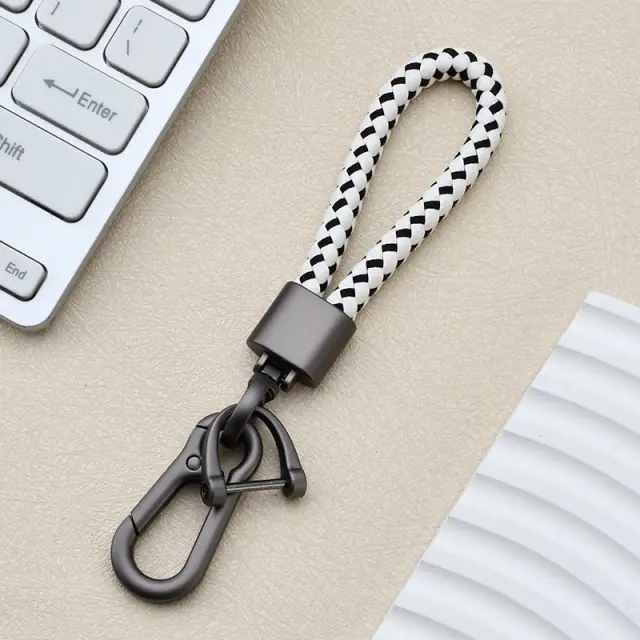 Eleganten in funkcionalen: Ta obesek za ključe brez napora združuje slog in funkcionalnost. Pletena vrvica doda pridih prefinjenosti, biserni in pištolsko sivi poudarki pa poskrbijo za edinstven in privlačen kontrast. Je popoln dodatek, ki bo dvignil vaš vsakdanji slog.