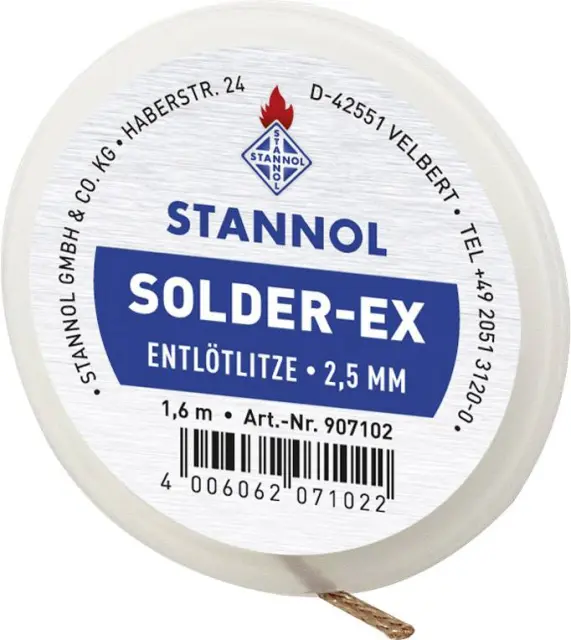Pletenica za razspajkanje Stannol Solder Ex dolžina 1.6 m širina 1.0 mm spajkalno impregnirana
