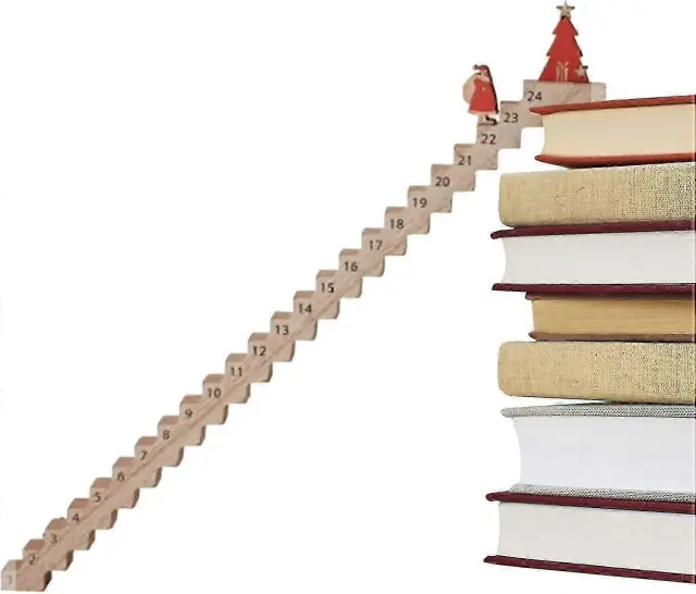 Plezalni božičkov adventni koledar 2024, lesene stopnice, božični adventni koledar, 24-dnevni božični odštevalni koledar, namizna dekoracija