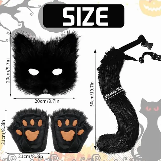 Plišast komplet kostuma lisice za noč čarovnic - vključuje masko, rep in tace