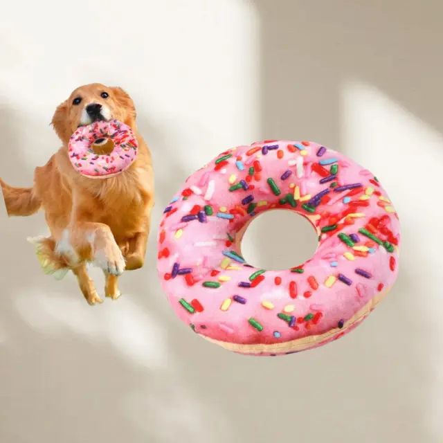 Interaktivna zabava pri igri: Vključite svojega hišnega ljubljenčka v ure interaktivne zabave s to plišasto igračo v obliki krofa. Vgrajena piskača zagotavlja slušno stimulacijo, ki pritegne pozornost vašega psa in ga spodbudi k igri. Ta igrača je popolna za prinašanje, vlečenje vrvi ali preprosto crkljanje. Mehka in prijetna oblika jo naredi za tolažilnega spremljevalca vašega hišnega ljubljenčka, zmanjšuje tesnobo in dolgčas. Je odličen način za krepitev vezi med vami in vašim kosmatincem, hkrati pa mu zagotavlja duševno in telesno stimulacijo. Svetle barve in igriv dizajn bodo vašega psa zabavali in pritegnili, zato je nepogrešljiv dodatek k njegovi zbirki igrač.