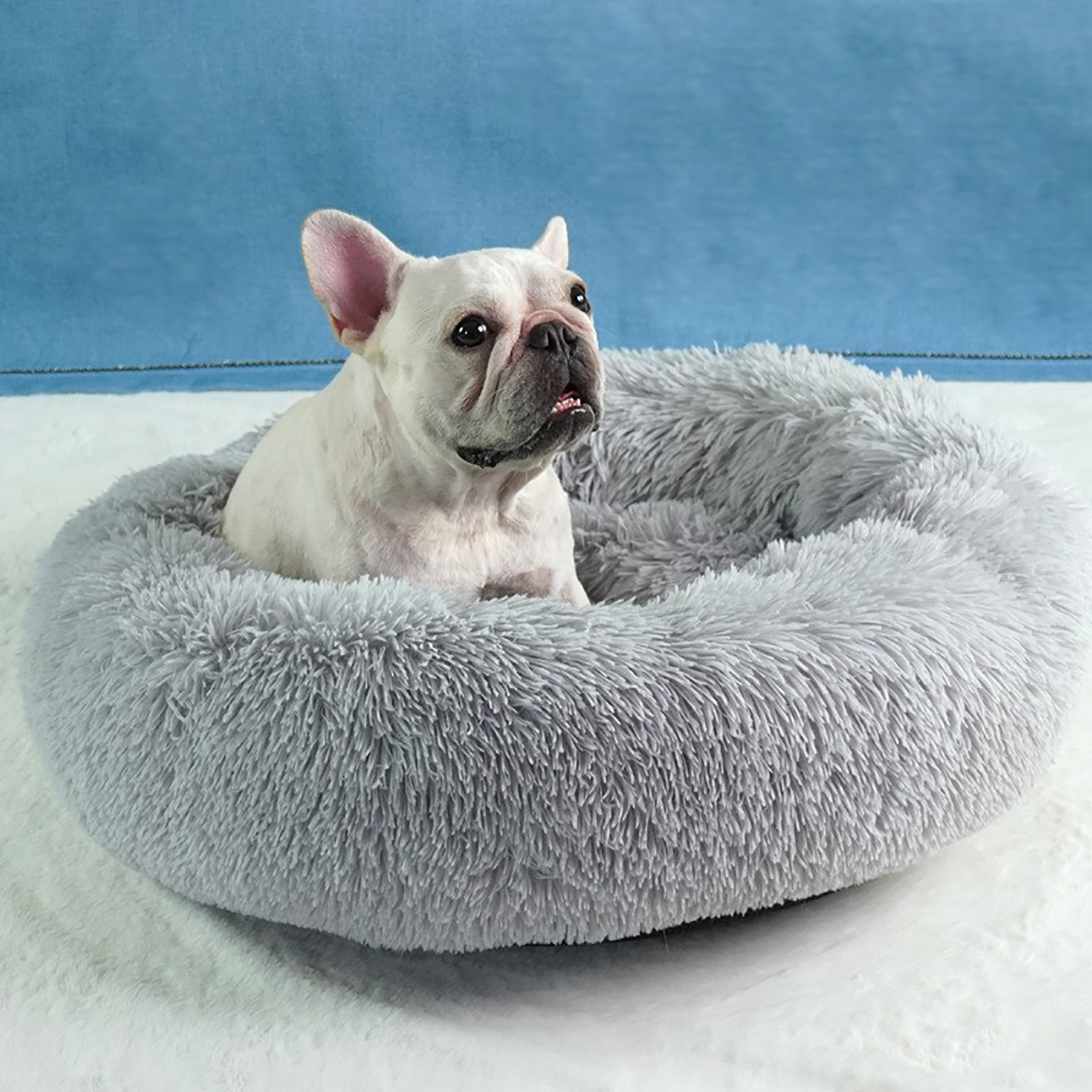 Plišasta okrogla postelja, siva - 60x60