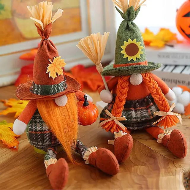 Plišasti palček za zahvalni dan, 2 paketa ročno izdelane plišaste palčke čarovnice brez obraza z metlo/bučo