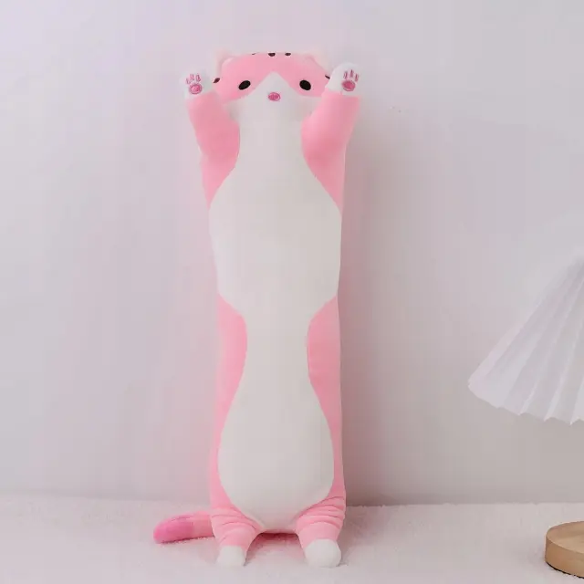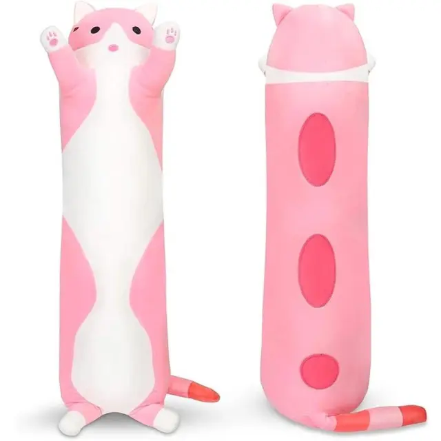 Ta mehka in vsestranska blazina ni le čudovita igrača, temveč tudi odličen pripomoček za podporo med počitkom, branjem ali spanjem. Zaradi svoje dolžine in ergonomske oblike je idealna za uporabo kot podporna blazina za vrat, hrbet ali noge, ter zagotavlja izjemno udobje med sproščanjem.Izdelana je iz visokokakovostnega, mehkega in prijetnega pliša, ki je prijazen do kože in enostaven za vzdrževanje. Blazina je napolnjena z gostim polnilom, ki ohranja svojo obliko, hkrati pa zagotavlja mehkobo in podporo. S svojo prikupno obliko muce v roza barvi bo ta blazina hitro postala nepogrešljiv del otroške sobe ali vaše dnevne rutine.Ta vsestranska plišasta blazina je primerna tako za otroke kot odrasle in je odlična izbira za darilo ob rojstnih dnevih, praznikih ali kot posebna pozornost za nekoga, ki potrebuje malo dodatnega udobja in topline.Blazina v obliki mačke je očarljiv in edinstven dodatek za vaš interier. Ta mehka in udobna blazina je bila skrbno zasnovana tako, da spominja na obliko ljubkega mucka z izbočenimi ušesi in izraznimi očmi.material: 100% poliester,