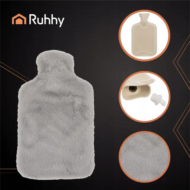 Plišasti termofor s pokrovom siv zajec 1,8L