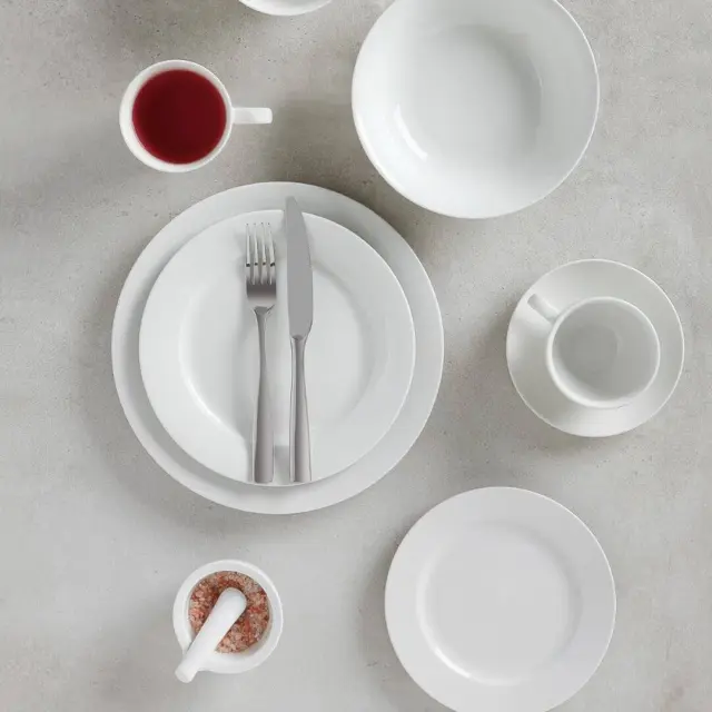 Plitev krožnik Falda s premerom 27,5 cm se ponaša s klasično obliko in brezčasno belo barvo, ki sta dopolnjeni z rahlo privzdignjenim širokim robom, ki doda vizualno globino in eleganco, zato je popolna izbira za vsakodnevno uporabo ali posebne priložnosti. Izdelan je iz porcelana, ki je trpežen in odporen proti krušenju. Krožnik je primeren za uporabo v mikrovalovni pečici in enostaven za čiščenje v pomivalnem stroju – idealen za sodobno kuhinjo. Naj bo to glavni krožnik za večerjo, eleganten servirni kos ali preprosto del vaše zbirke – Falda bo s svojo preprostostjo vedno navdušil. NAMIG: Kombinirajte ga z ostalimi izdelki iz iste linije Falda.