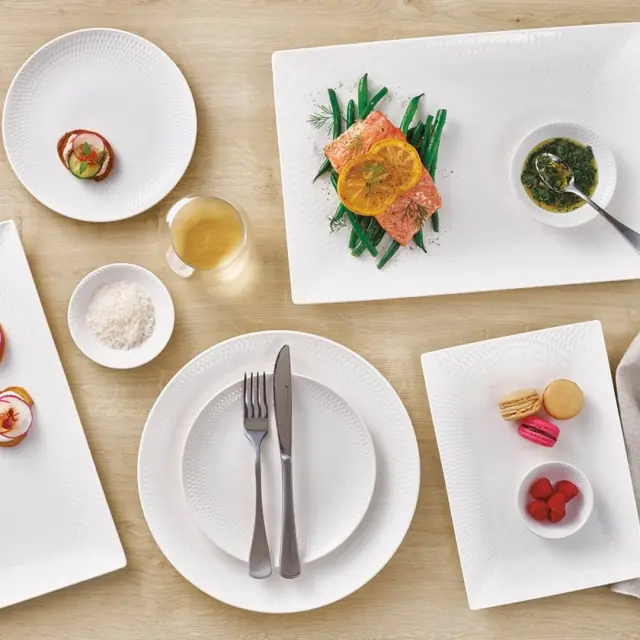 Ta preprost, a eleganten krožnik Diamonds v klasični beli barvi je popoln oder za okusne jedi, ne glede na to ali na njem postreže sočen zrezek ali testenine. Plitev krožnik premera 27 cm se ponaša z rahlo privzdignjenim robom in prefinjeno površinsko strukturo v obliki šesterokotnikov, ki spominja na diamante. Izdelan je iz kompaktnega ter trpežnega porcelana odpornega na temperaturo in primernega za vsakodnevno uporabo. Primeren je za mikrovalovno pečico in pomivanje v pomivalnem stroju. Zagotovo vas bo prepričal s svojim klasičnim in elegantnim stilom. Dopolnite ga še z ostalimi izdelki iz iste linije Diamonds, prestižne blagovne znamke Maxwell&Williams.