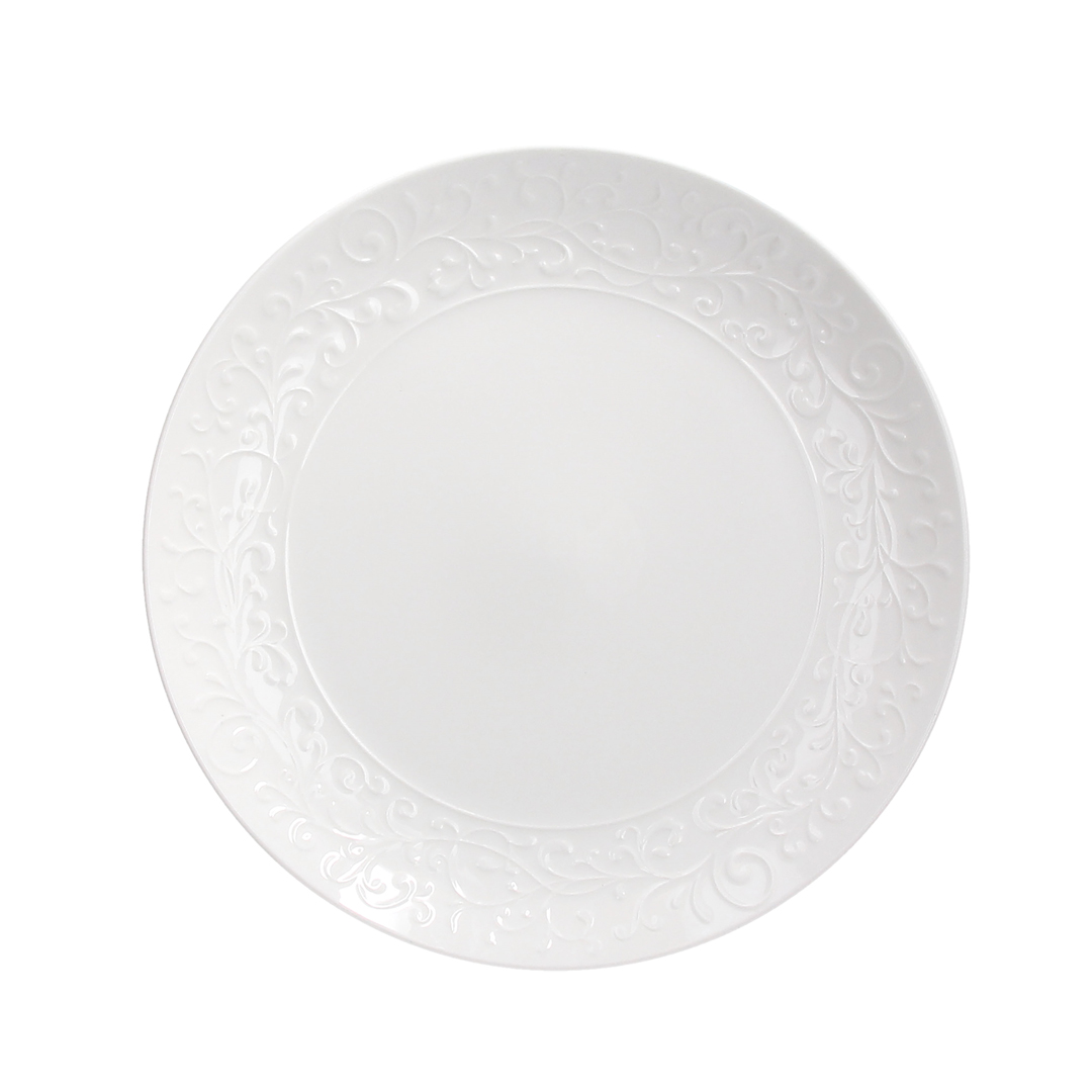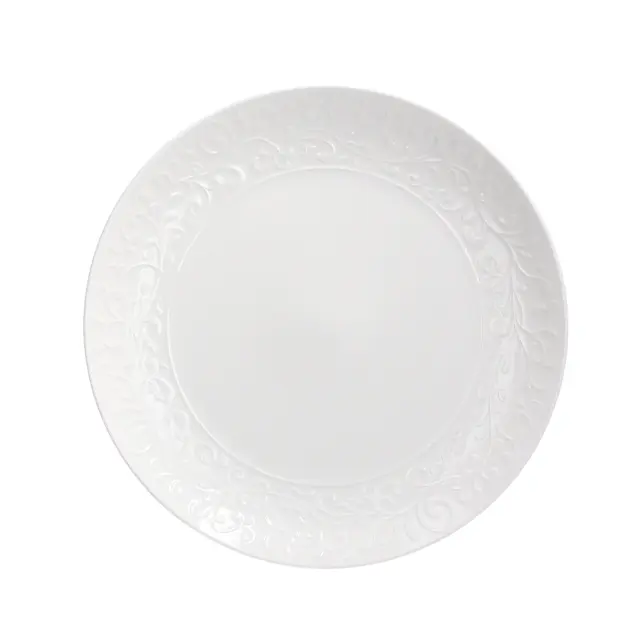Plitev krožnik Jasmin premera 25 cm je del romantične linije, blagovne znamke Tognana, ki se ponaša s cvetličnim reliefnim ornamentom na robovih krožnika, ki spominjajo na cvetoči jasmin. Čiste linije in bela barva bosta na vašo mizo vnesla eleganco in prefinjenost. Krožnik je izdelan iz kakovostnega porcelan, ki je primeren za uporabo v mikrovalovni pečici in pomivanje v pomivalnem stroju. Kombinirajte ga še z ostalimi izdelki iz iste linije Jasmin.
