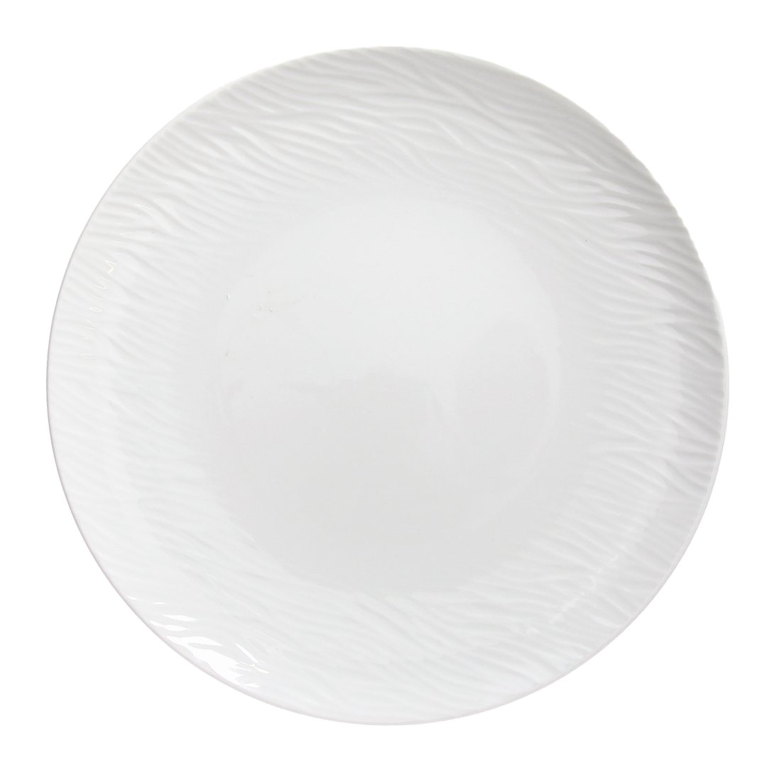 Plitev krožnik Seaside premera 28 cm je del klasičnega jedilnega servisa, ki vas bo navdušil s svojim reliefnim zaključkom, ki spominja na gladino morja, ki ga valovi rahel vetrič. Linija Seaside je bila zasnovana za tiste, ki ljubijo umirjenost in minimalen mise en place, z elegantnim in brezčasnim detajlom. Okrogel krožnik višine 2,5 cm je primeren za vsakodnevno uporabo ali posebne priložnosti. Trpežen bel porcelan omogoča, da ga postavite v mikrovalovno pečico in pomijete v pomivalnem stroju. Kombinirajte ga še z ostalimi izdelki iz iste linije Seaside in ustvarite svoj popoln komplet.