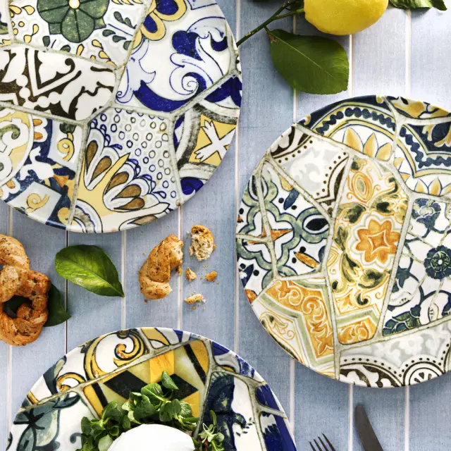 Plitev krožnik Maiolica iz linije Seaside je izdelan iz poslikanega belega porcelana premera 31 cm. S sodobno estetiko in ekstravagantnim okrasjem bo krožnik poskrbel za popolno mizo in izpopolnil jedi. Lahko ga uporabite v mikrovalovni pečici in pomijete v pomivalnem stroju. Na voljo je v različnih poslikavah.
