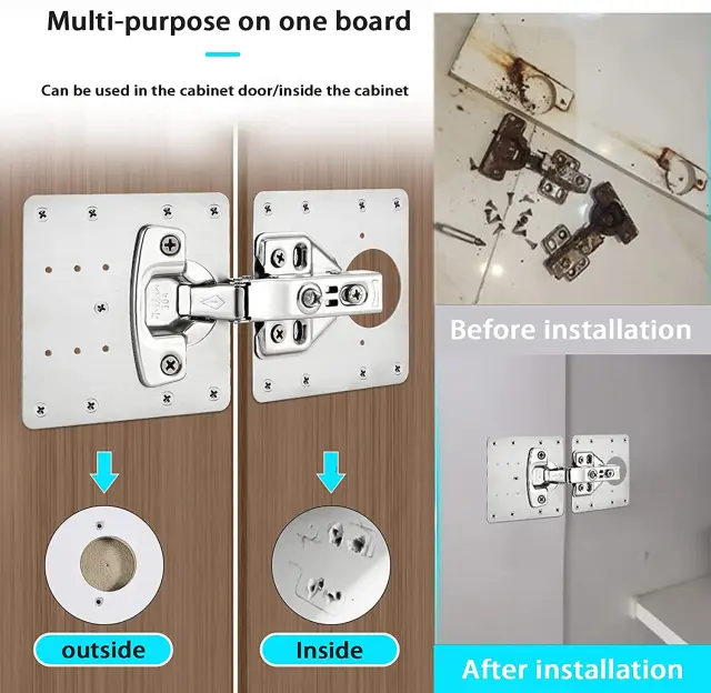 Vsestranski komplet za popravilo: montažno ploščo lahko uporabite za pritrditev tečajev in pohištva. Primerno tudi za pritrditev lesenih sedežnih garnitur, lesenih miz, stolov, lesenih postelj itd.
