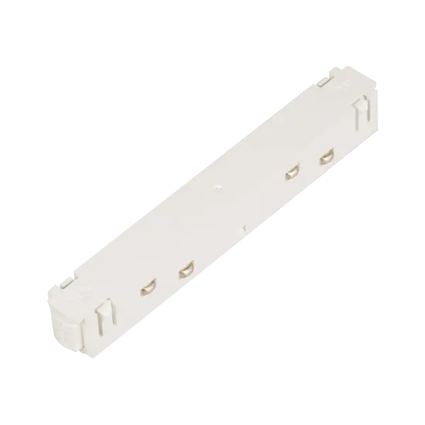 Ravni konektor za magnetsko tirnico se uporablja za povezovanje dveh ravnih magnetskih tirnic. Za povezavo med dvema tirnicama je potrebno uporabiti še 2 spojnici. Magnetna tirnica se lahko reže (skrajšuje) glede na dolžino načrtovane trase osvetlitve. Magnetna vgradna tirnica se uporablja v moderno urejenih prostorih. Reflektorske in osvetlitvene naprave lahko prenašate in premikate po tirnici brez dodatnih kablov. Glede na izbrane osvetlitvene naprave je treba izbrati ustrezno napajanje za magnetsko tirno osvetlitev.
