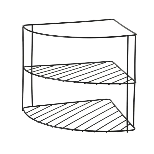 Kotična polica MODERN KITCHEN iz črnega kovinskega materiala je funkcionalna in estetska rešitev za optimizacijo prostora v kuhinji, kopalnici ali drugih prostorih. Kompaktne dimenzije (pribl. 22,5 × 22,5 × 21,5 cm) omogočajo enostavno namestitev v kotu pulta, omarice ali niše in učinkovito izkoriščajo sicer neuporabljeno površino.