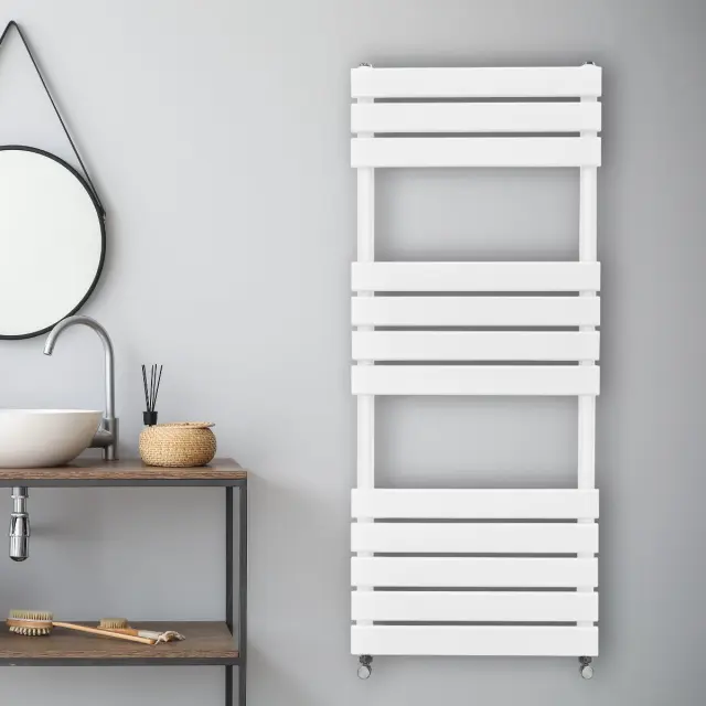 Spremenite svojo kopalnico v zatočišče topline in razkošja z našimi najsodobnejšimi ravnimi radiatorji z obešalniki za brisače v beli barvi – popolna mešanica brezčasne elegance in sodobne učinkovitosti.