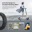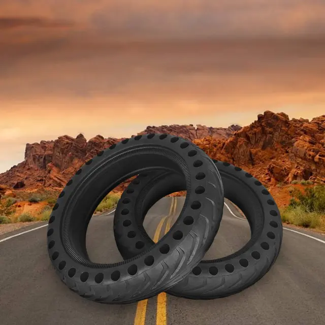 Pnevmatike brez predrtja - varne in brez vzdrževanja: Nikoli več predrtih pnevmatik! Masivna pnevmatika ne potrebuje cevi ali polnjenja in se izognete predrtjem, popravilom in vzdrževanju. Pnevmatika v obliki satja je izdelana iz visokokakovostne gume in ima površino, ki zagotavlja odličen oprijem in dobro zaščito proti zdrsu tudi v snegu in dežju. Pnevmatika za skuter je odporna na pritisk, vzdržljiva in blaži udarce, kar zagotavlja dodatno udobje.