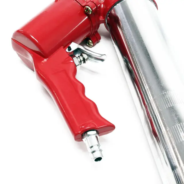 Ta pištola za mast ima 400ml rezervoar za mast. Zahvaljujoč pogonu na stisnjen zrak je mazanje s to pištolo za mazanje še hitrejše. Ročaj za pištolo omogoča uporabo z eno roko, kar močno olajša delo. Pištola za mazanje deluje s stisnjenim zrakom 4 – 6 barov in se zaradi svoje majhnosti in navojne cevi šobe lahko uporablja kjer koli je to potrebno.