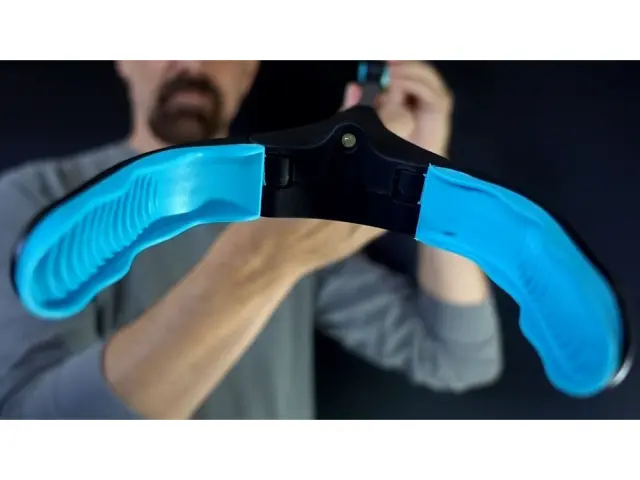 Za odpiranje in zlaganje prijemala pritisnite modri gumb, ki se nahaja na mestu, kjer je naprava zložena.