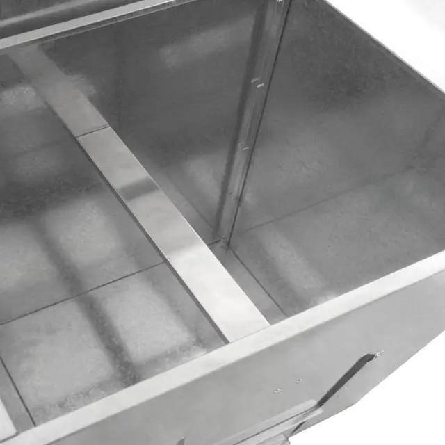 Ta robustna enota za shranjevanje, zasnovana tako, da prenese najbolj ekstremne vremenske razmere, je izdelana iz vrhunskega pocinkanega jekla, kar zagotavlja izjemno vzdržljivost in zaščito pred rjo in korozijo. Poleg izjemne vzdržljivosti vodoodporna zasnova in dvignjeno podnožje tega rezervoarja za premog zagotavljata, da vaš premog ostane suh in optimalne kakovosti, ne glede na to, kako hudo vreme postane. Poleg tega je ta bunker odporen na glodavce, kar zagotavlja, da vaše gorivo ostane varno, zanesljivo in brez nezaželenih vsiljivcev.