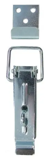 Jeklena naprsna ključavnica s ključavnico obešanko, skupna dolžina 82 mm, z zapiralno kljuko tipa "c", dolžine 21 mm in širine 18 mm.