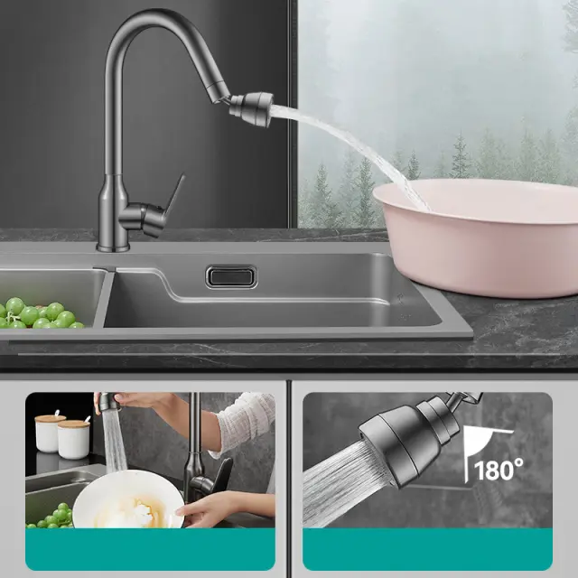 Izboljšan doseg in nadzor: Ta podaljšan perlator za pipo zagotavlja bistveno večji doseg in prilagodljivost v primerjavi s standardnimi pipami. Njegova podaljšana dolžina vam omogoča, da usmerite vodni tok natančno tja, kjer ga potrebujete, kar olajša in učinkoviteje opravlja naloge, kot sta pomivanje posode ali izpiranje zelenjave. Sposobnost nadzora smeri vodnega toka zmanjšuje brizganje in zapravljanje vode, s čimer ohranja vaše območje umivalnika čistejše in bolj suho. Uživajte v udobju prilagojene izkušnje vodnega toka.