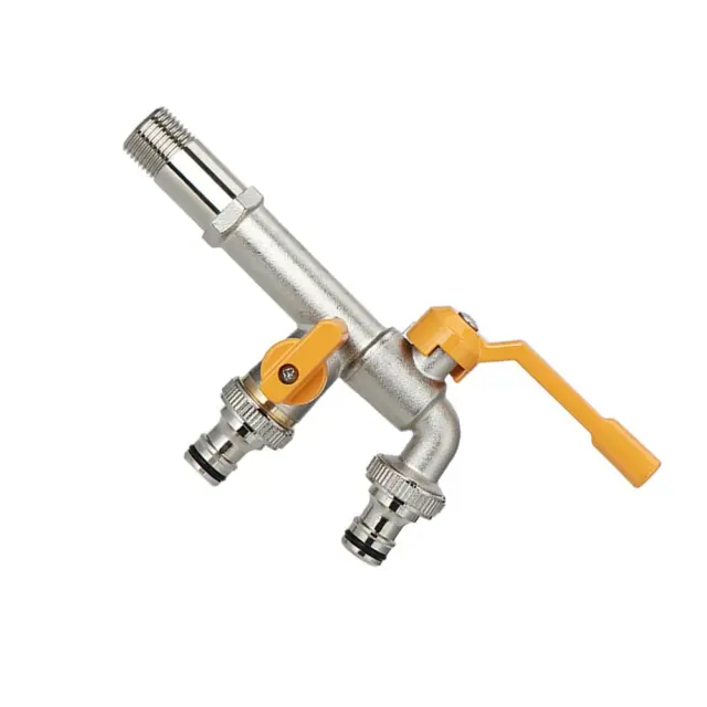 Dvojni nadzor izhoda: Izkusite večjo priročnost z dvojno zasnovo izhoda, ki omogoča neodvisen nadzor vsakega izhoda. Ta funkcija vam omogoča, da uporabljate sprednji in zadnji izhod hkrati ali ločeno, kar ustreza različnim potrebam po zalivanju. Popoln za upravljanje več opravil na vašem vrtu, kot je priključitev sistema škropilnikov in cevi za pranje, brez kakršnih koli motenj. Neodvisen nadzor zagotavlja učinkovito porabo vode in preprečuje izgubo tlaka, zaradi česar je idealna rešitev za različne zunanje aplikacije. Ta medeninasta vrtna pipa je zasnovana za optimalno delovanje in enostavno uporabo, saj zagotavlja zanesljiv vir vode za vse vaše vrtnarske in čistilne potrebe.