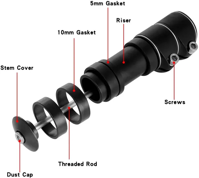 Enostavna montaža: Odvijte krmilo, namestite podaljšek in nanj privijte krmilo. Ni težje kot dvigniti krmilo. Podaljšek ustreza večini koles z 28,6 mm premerom krmila.