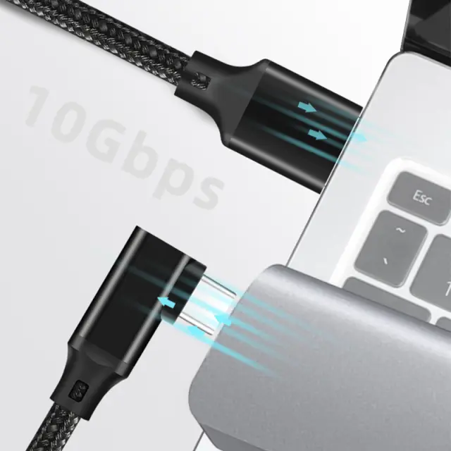 Komolna zasnova za udobje: Edinstvena 90-stopinjska komočna zasnova omogoča, da se kabel položi ravno na vaš prenosnik ali druge naprave, kar preprečuje, da bi oviral vrata ali vam bil v napoto med uporabo vaše naprave.