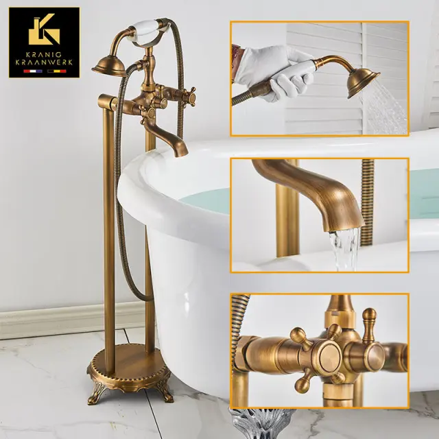Podeželsko industrijsko | Stoječa kopalna pipa | Karina | Staro zlato