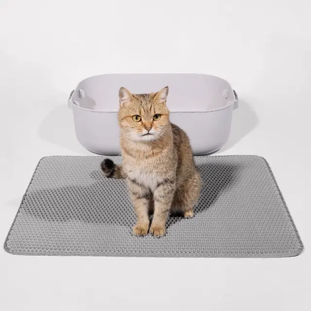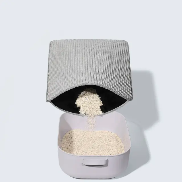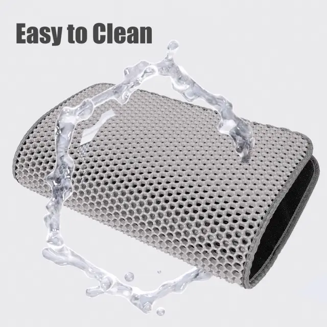 Enostavno in praktično: Če postavite podlogo za mačji pesek pred smetnjak, zagotovite, da vaš dom ostane brez raztresenega mačjega peska. Pesek se zlepi in teče skozi zgornjo plast ter se zbira v reži. Nato lahko preprosto dvignete podlogo za smetnjak in izpraznite pesek nazaj v zaboj.